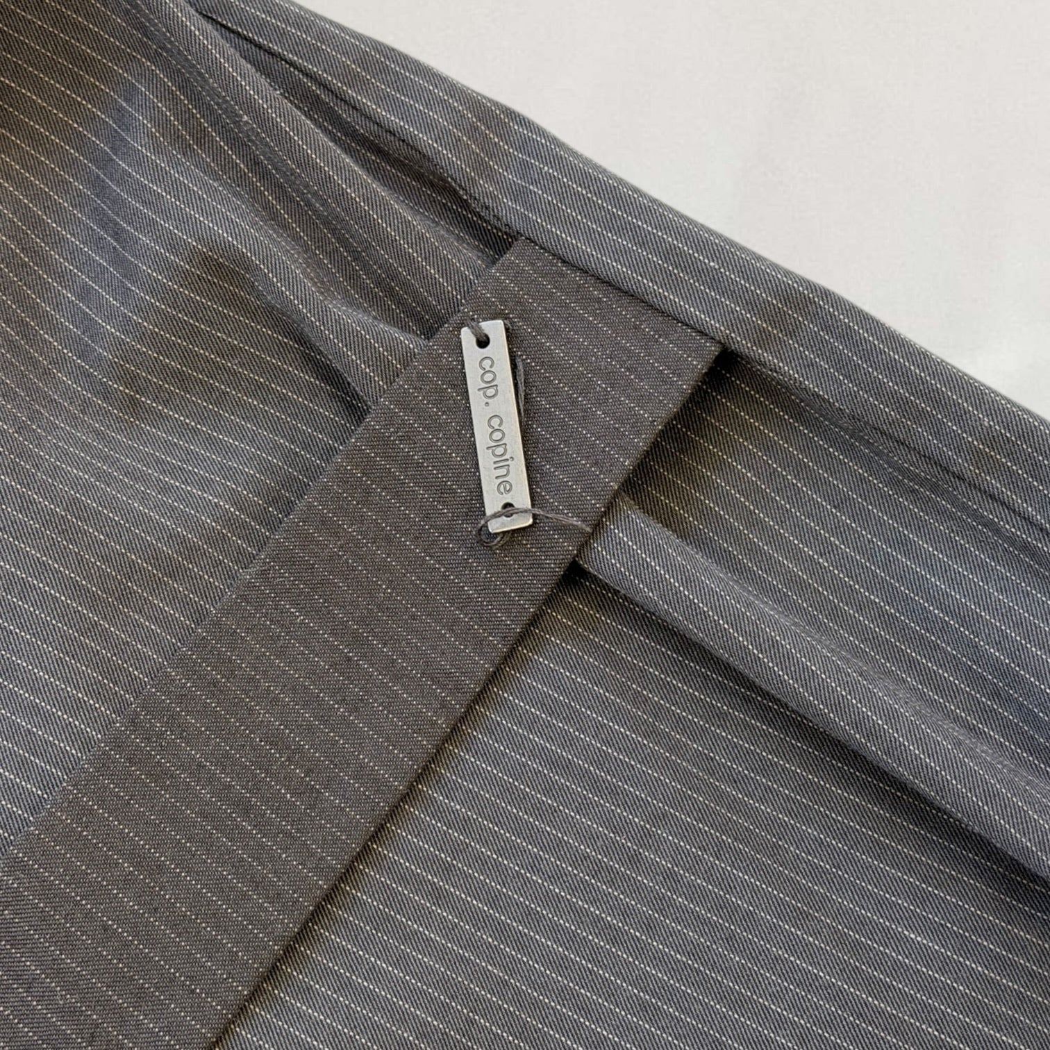 Grey Cop Copine pinstripe trousers with cross over waistband