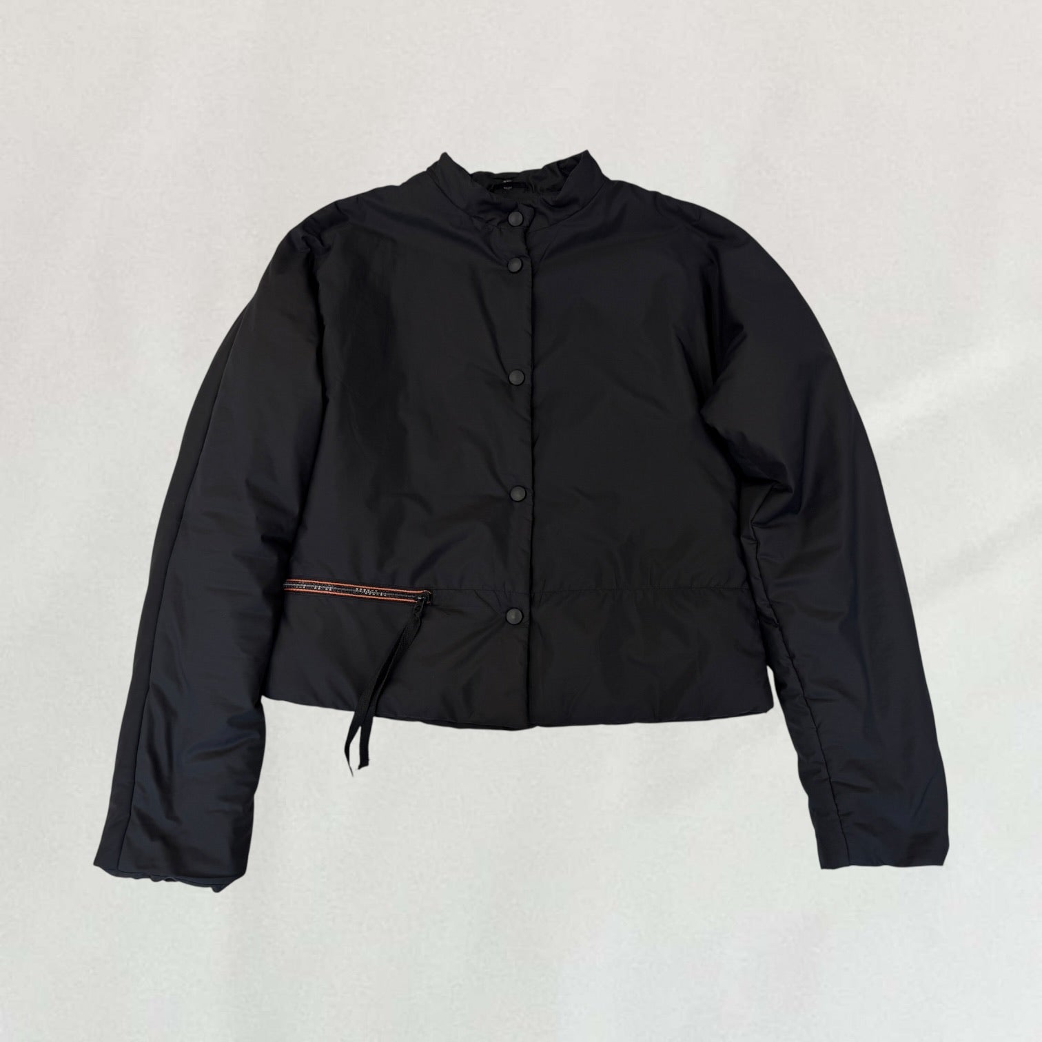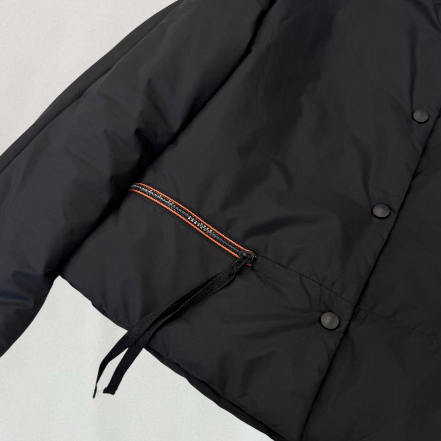 Black Cop Copine puffer jacket with orange zipper detail