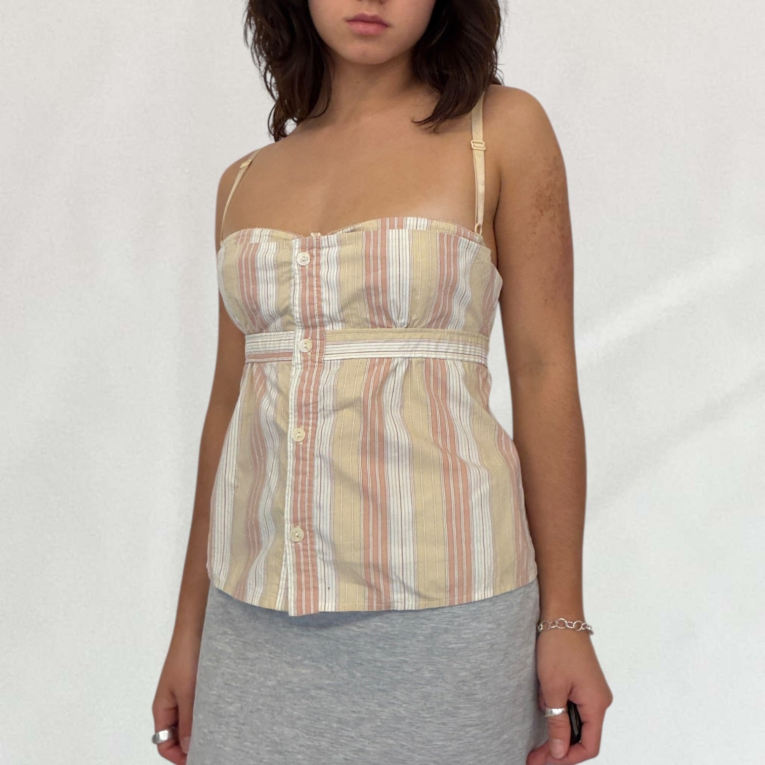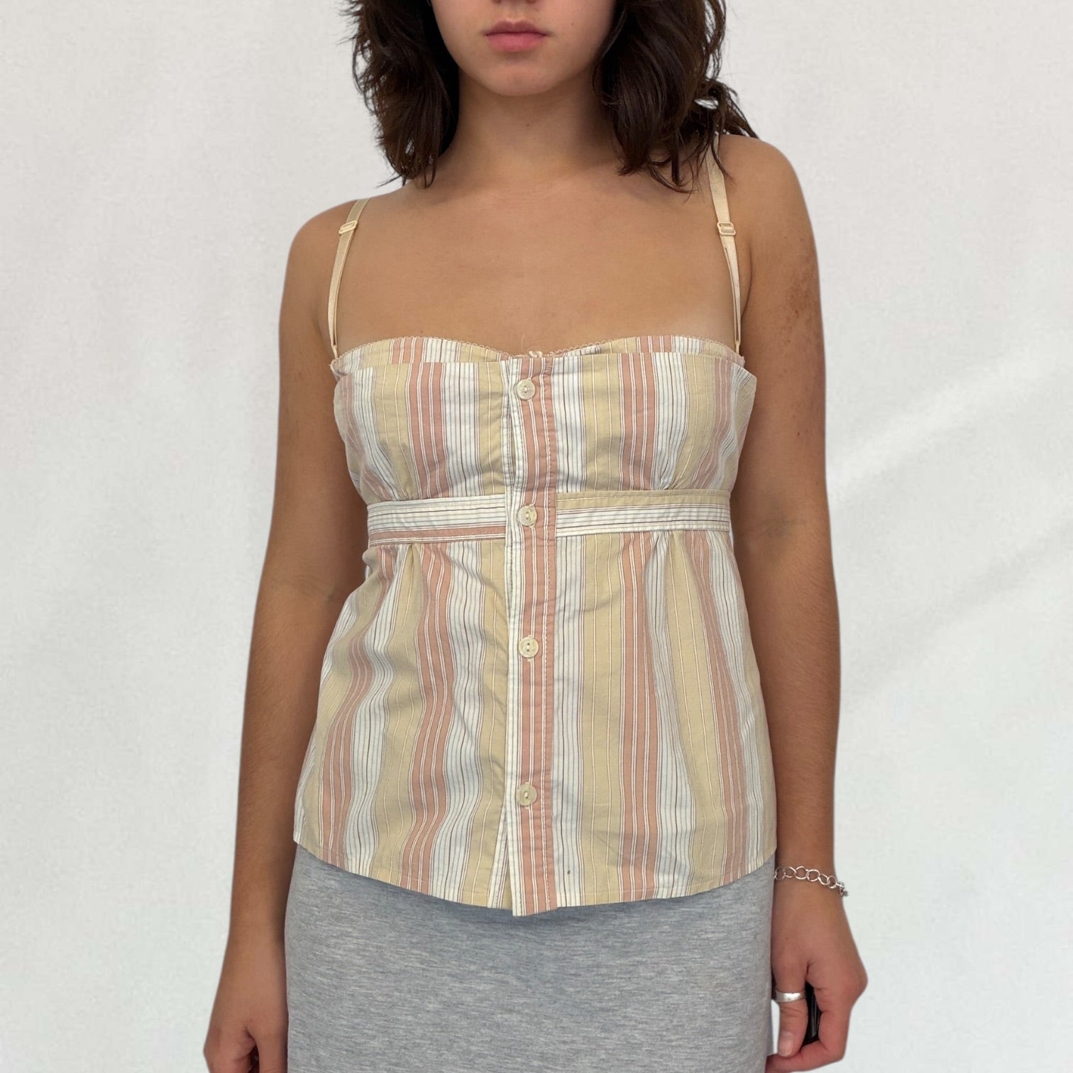 Cream Dolce & Gabbana striped blouse with built in bra