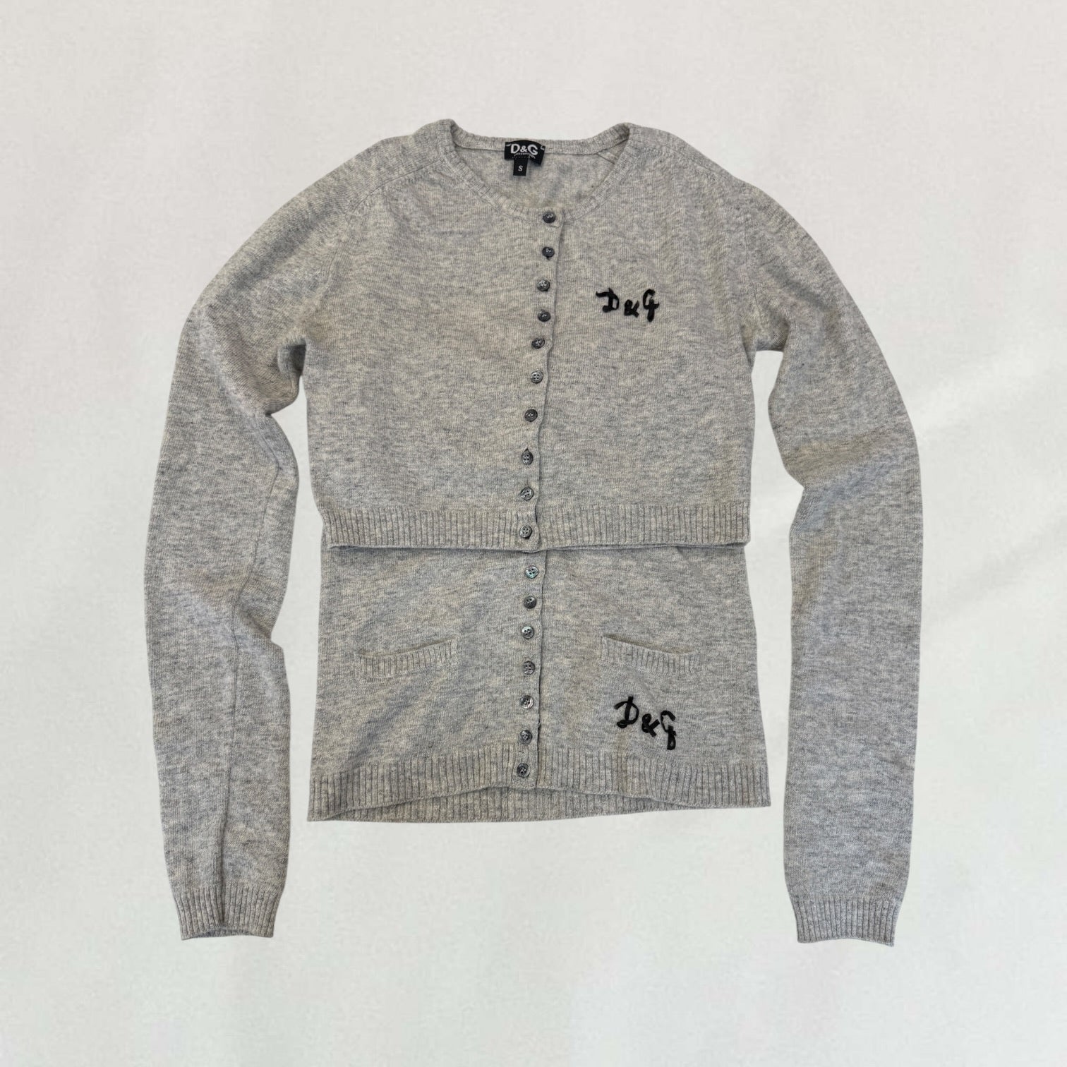 Grey Dolce & Gabbana two piece knitted corset and cropped cardigan set