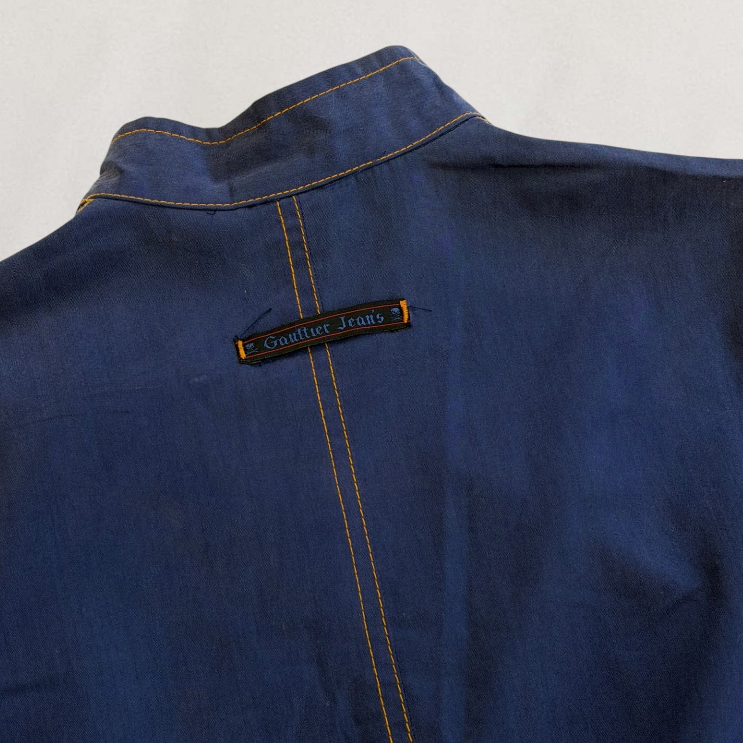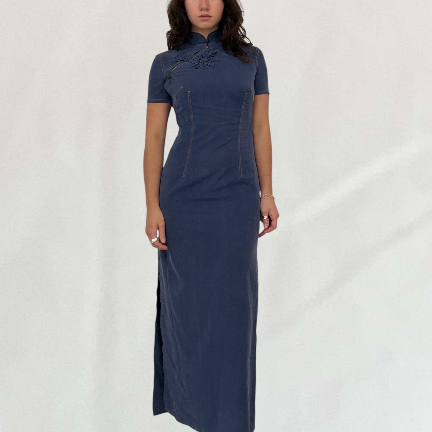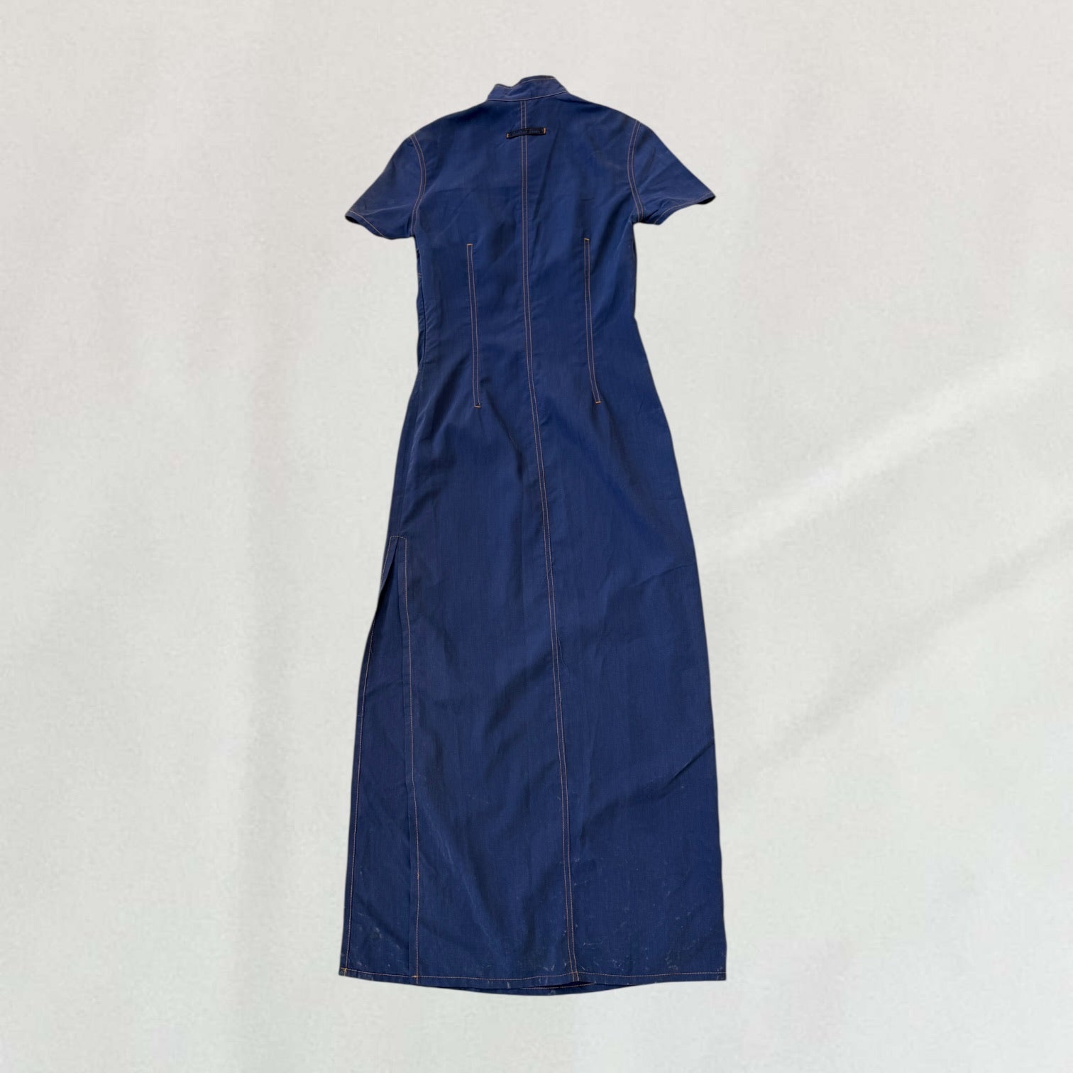 Blue Jean Paul Gaultier maxi dress with asymmetric button up neckline