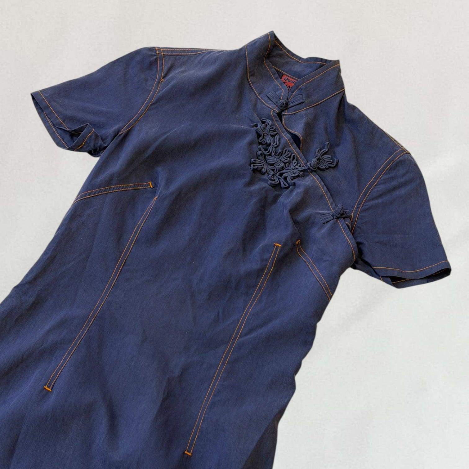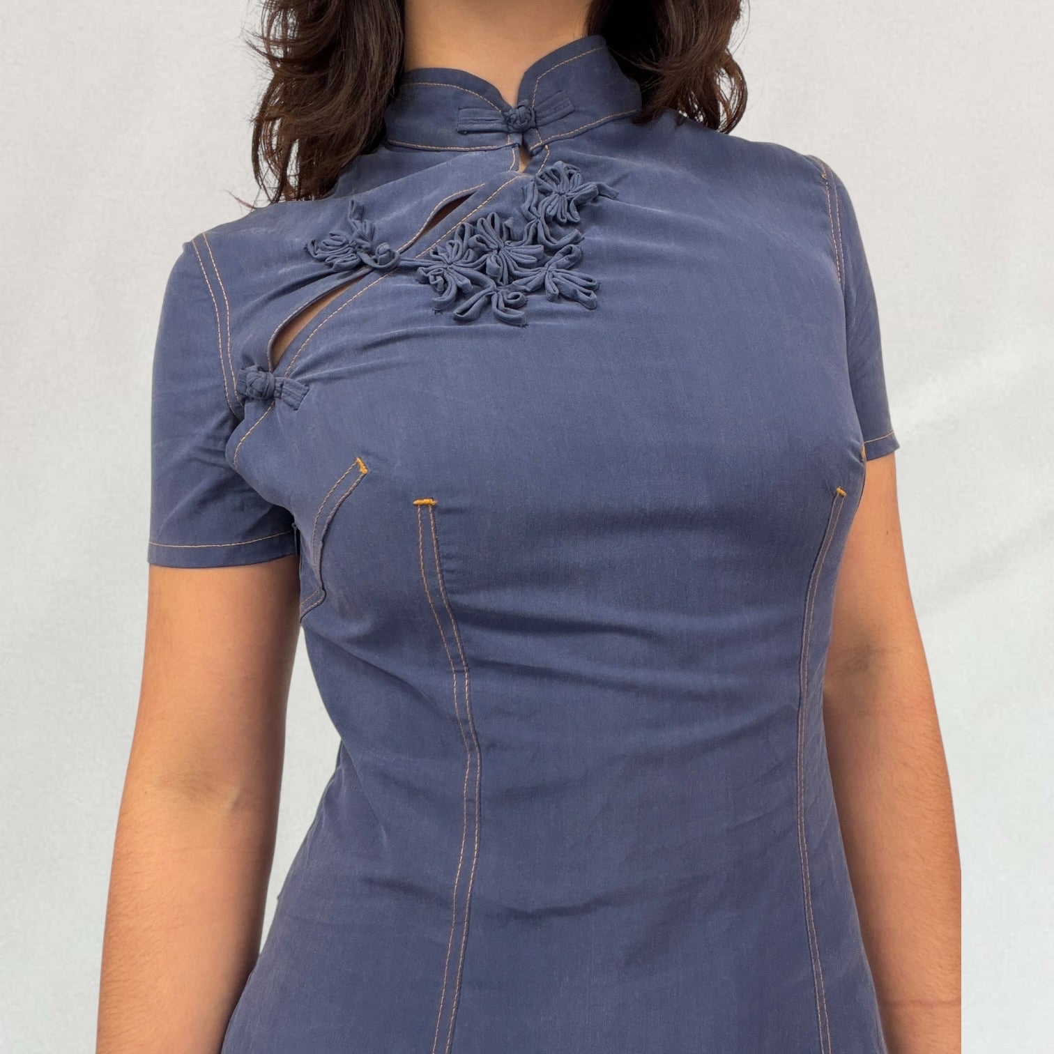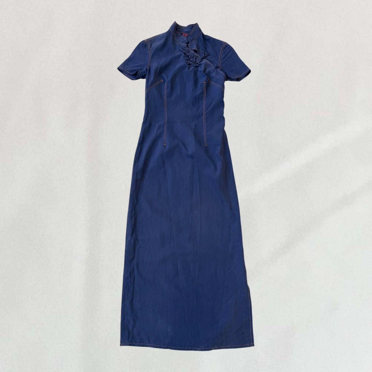 Blue Jean Paul Gaultier maxi dress with asymmetric button up neckline