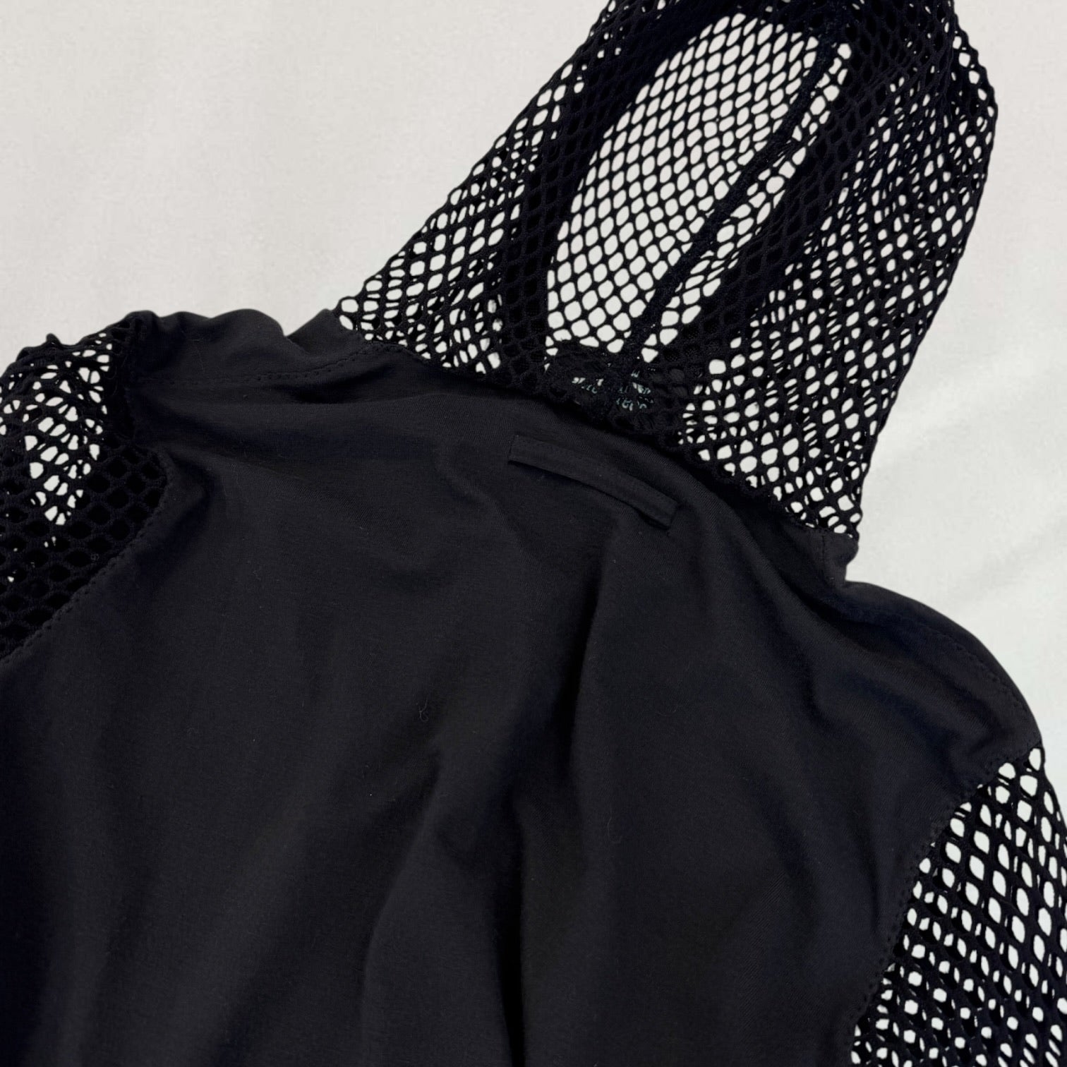 Black Jean Paul Gaultier long sleeve hooded top with netted arms