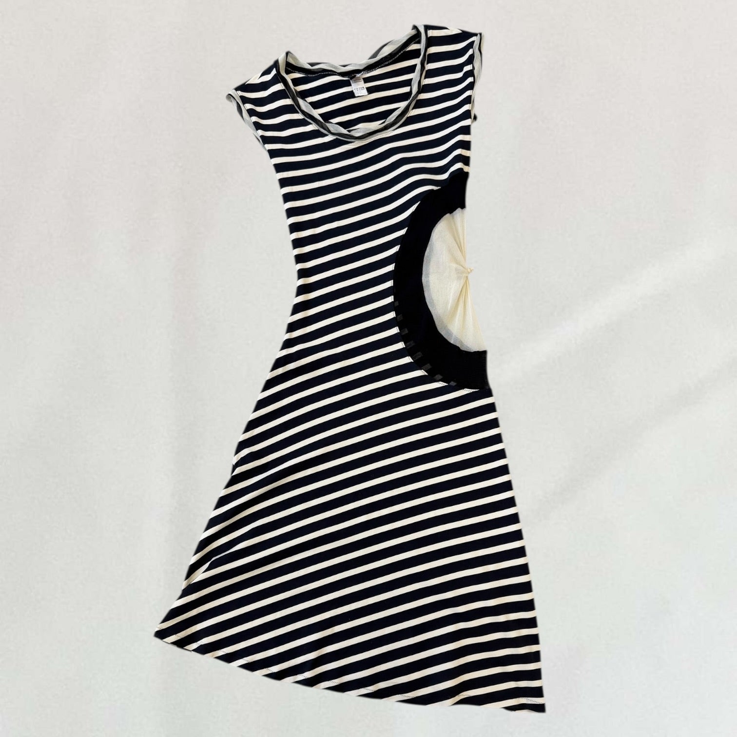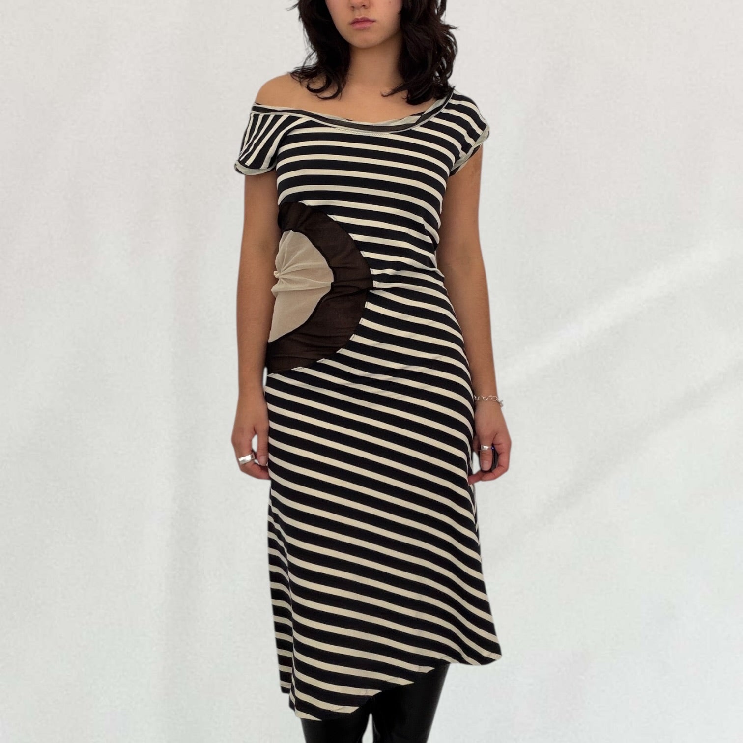 Black and white Jean Paul Gaultier striped midi dress with mesh circle