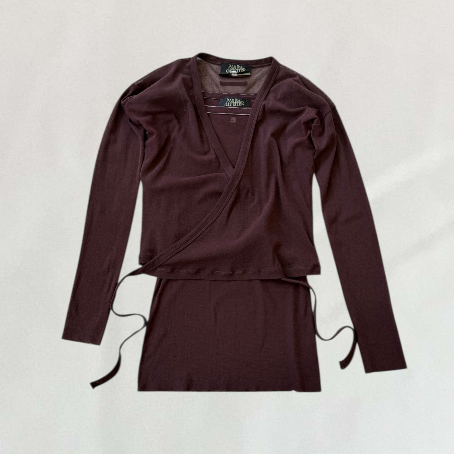 Brown Jean Paul Gaultier two piece T-shirt and wrap top set