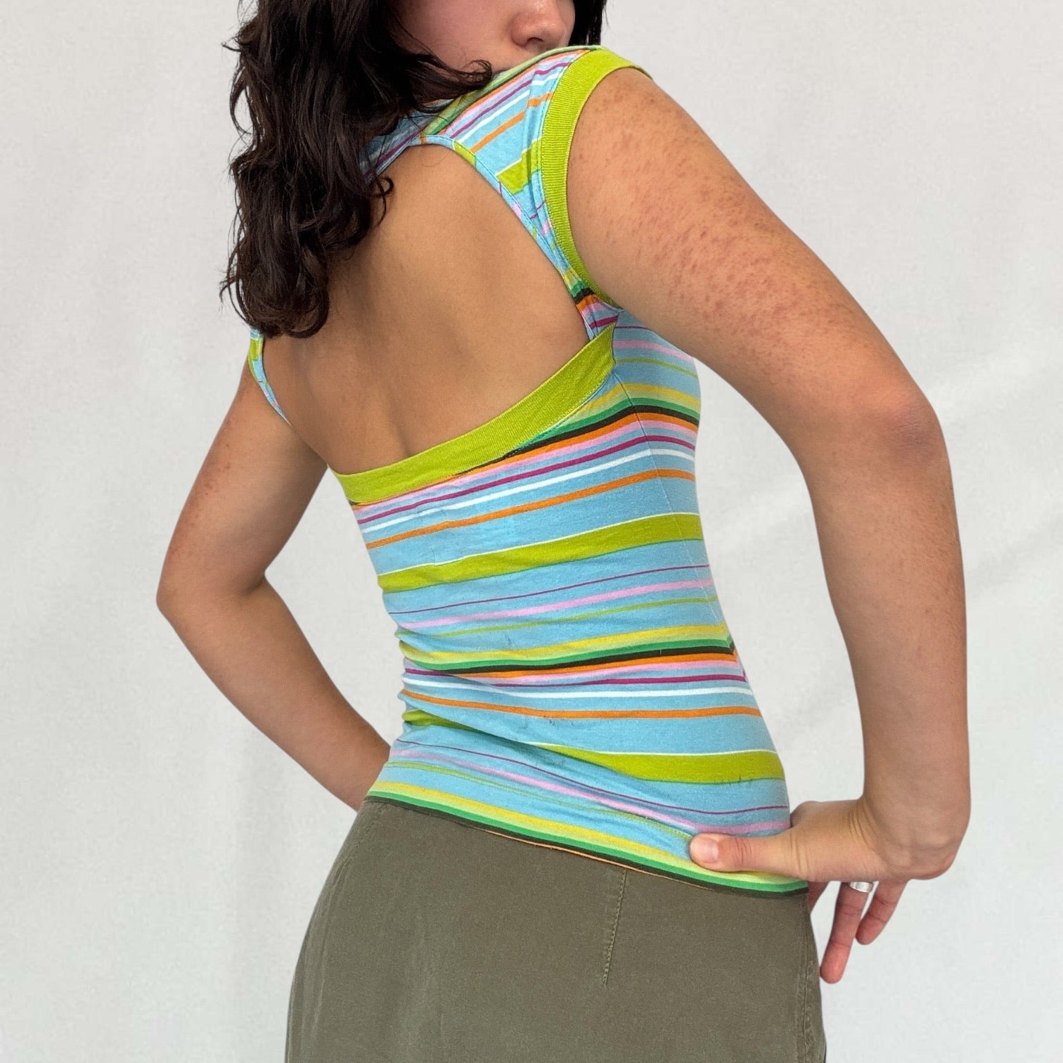 Multi-coloured Miss Sixty striped vest with cut-out back detail