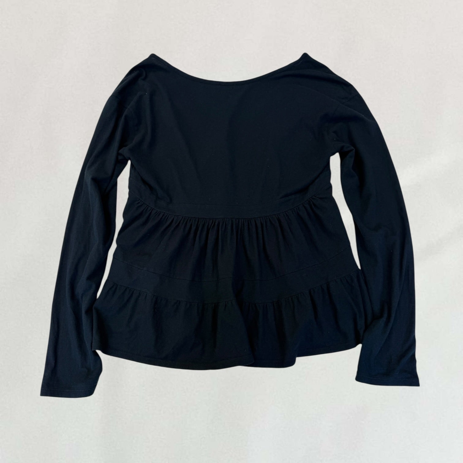 Deep navy Miu Miu babydoll long sleeve V-neck top