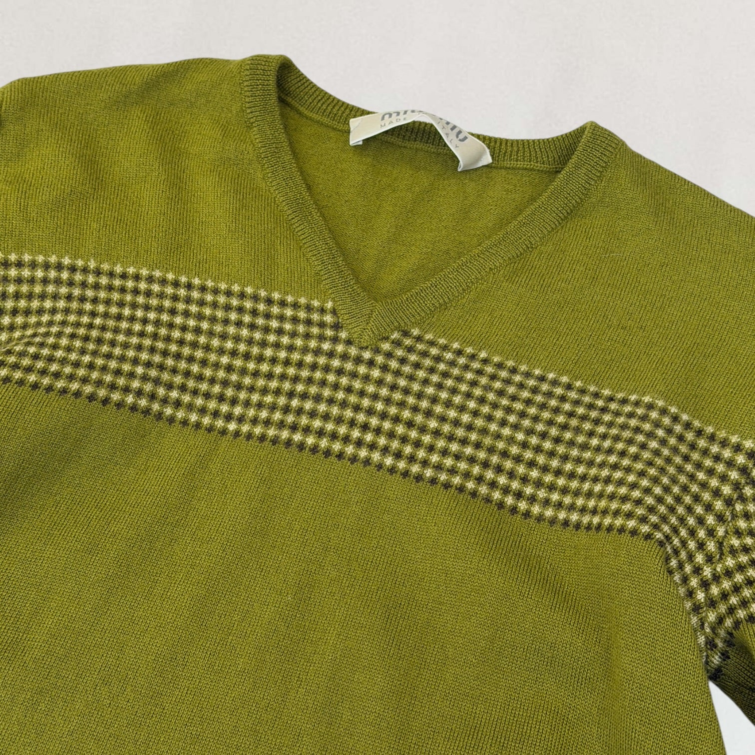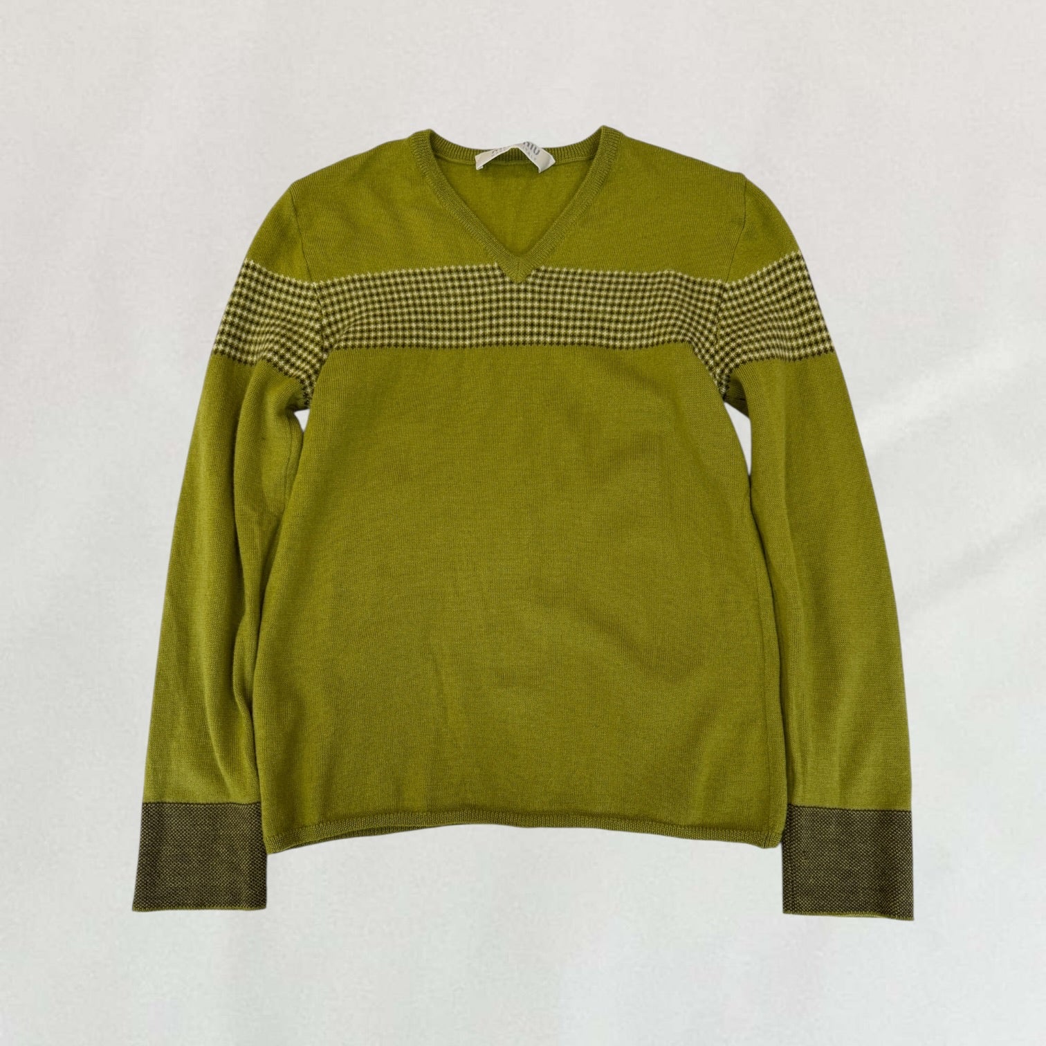 Green Miu Miu knitted V-neck jumper with houndstooth detailing