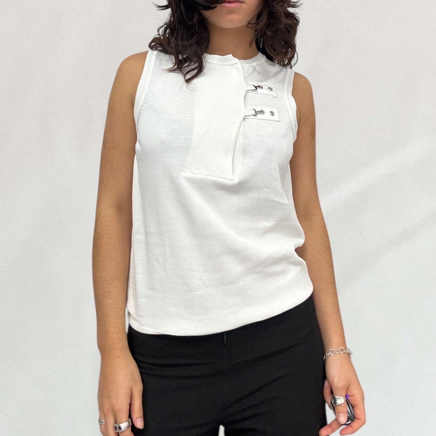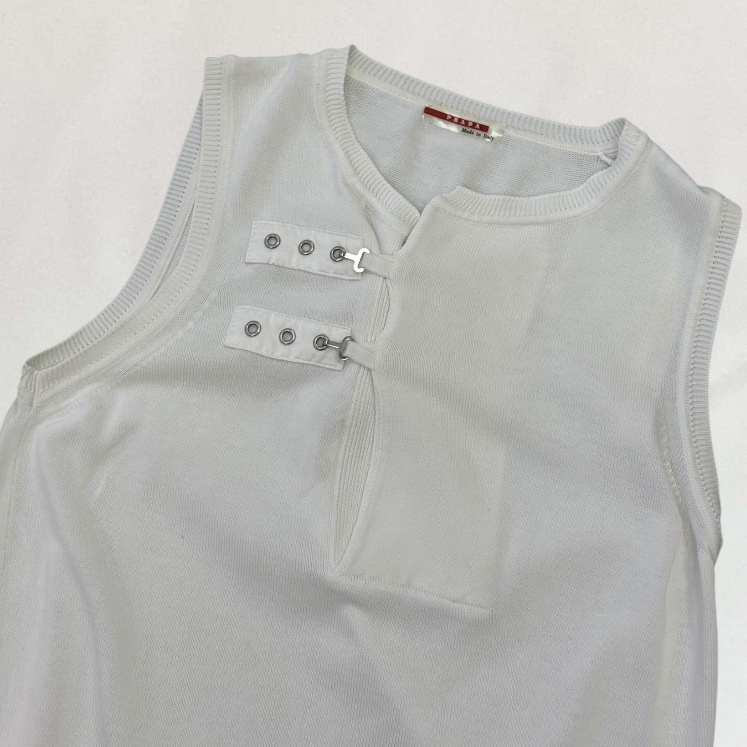 White Prada knitted hook and eye vest