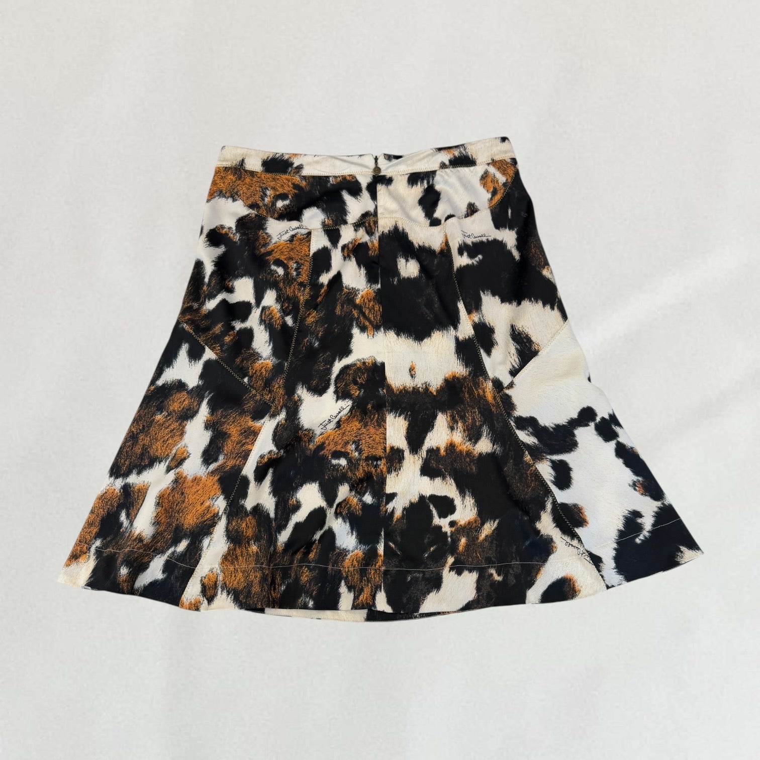 Cream and brown Roberto Cavalli satin cowhide print midi skirt